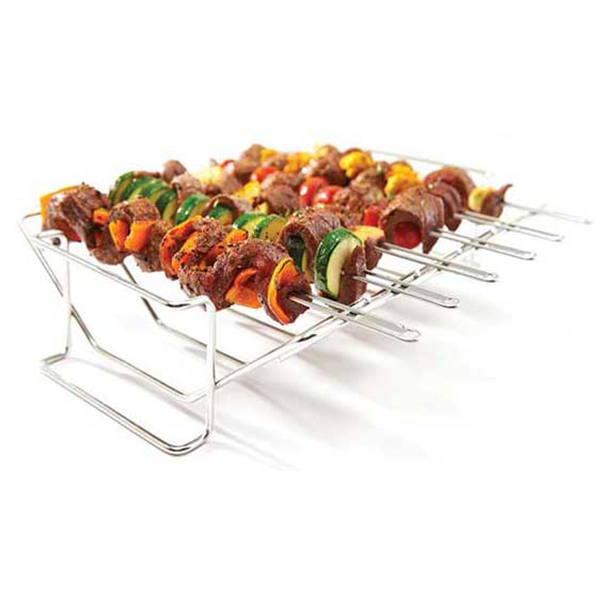 The perfect roast and poultry rack, kebab holder and rib rack set. The multi rack kit features a stainless roasting and rib rack and 6 stainless double pronged skewers. This kit is as multi-functional as a grilling accessory can get. Includes 6 stainless skewers, can hold up to 6 racks of ribs. | |