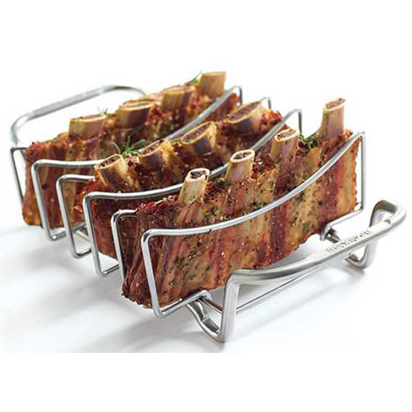 The Broil King Imperial rib and roast rack accommodates 5 racks of ribs within an ultra durable high grade stainless steel wire frame. The multi-use design also accommodates large cuts of meat for roasting on the upper concave wire structure. Oversized 10 mm handles support the entire rack and allow it to be easily transferred from one part of the grill to another. | |