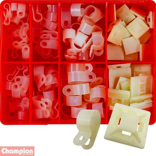 124 Pieces: Nylon Cable ‘P’ Clamps & Cable Tie Mounts