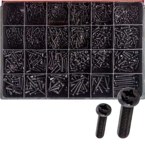 CA2100 | Champion 1785pc Metric Black Machine Screw Master Kit • Metric • Black Zinc Plated • Phillips Head Drive • Pan Head • 14 Sizes: 3mm to 6mm • Lengths: 10mm to 50mm • 1785 Pieces
