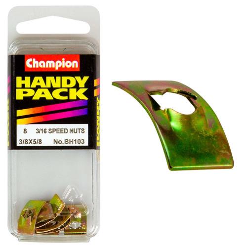 BH103|Champion 3/16in x 5/8in x 3/8in Speed Nut Description • 5mm I.D • Pack Size: 8