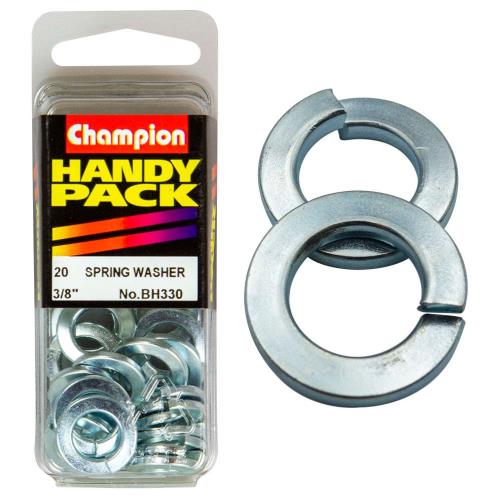BH330|Champion 3/8in Spring Washer Description • Flat Section • 3/8" • Zinc Plated • Pack Size: 20