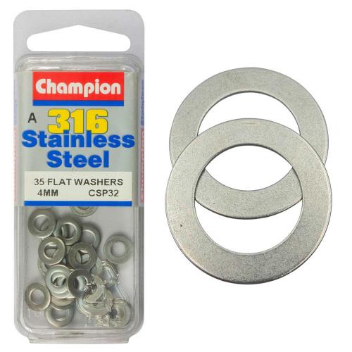 CSP32|Champion 316/A4 M4 Flat Washer (A) Description • 4mm • Metric • Stainless Steel • 316/A4 Marine Grade • Pack Size: 35