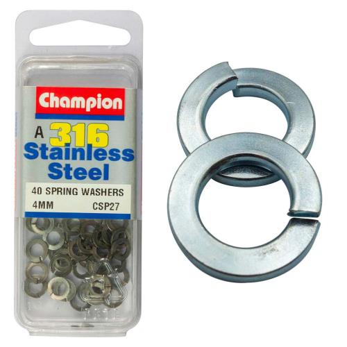 CSP27|Champion 316/A4 M4 Spring Washer (A) Description • 4mm • Metric • Stainless Steel • 316/A4 Marine Grade • Pack Size: 40