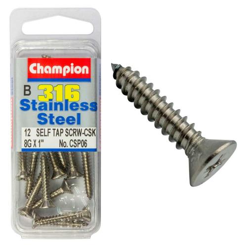 CSP06|Champion 316/A4 S/Tap Set Screw - Csk 8G x 1in (B)