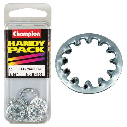 BH136|Champion 5/16in internal Star Washer Description • Internal • 5/16" • Zinc Plated • Pack Size: 15