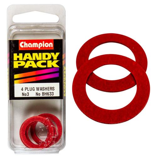 BH633|Champion 5/8in Suit No 3 Plug - Drain Plug Washer Description • Red Fibre • 5/8" x 7/8" x 3/32" • Pack Size: 4