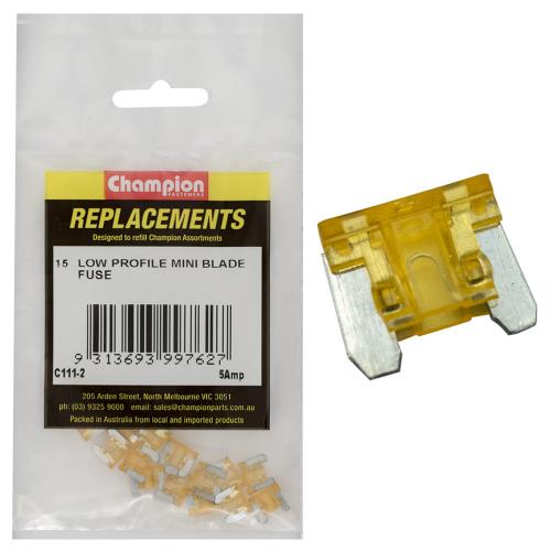 C111-2 | Champion 5Amp Low Profile Mini Blade Fuse (Tan) -15pk Specifications • Pack Size: 15
