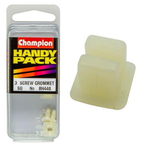 BH440|Champion 6G Set Screw Grommet Trim Clip Description • Colour: White • Screw: 4.2mm • Hole: 7mm x 7mm • Head: 10 x 10mm • Pack Size: 3
