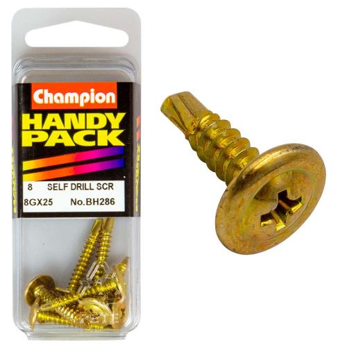 BH286|Champion 8G x 18 x 25mm Self Drilling Set Screw Description • Self Drilling • Mushroom Head • Phillips • 4.2mm-18mm x 25mm • Pack Size: 8