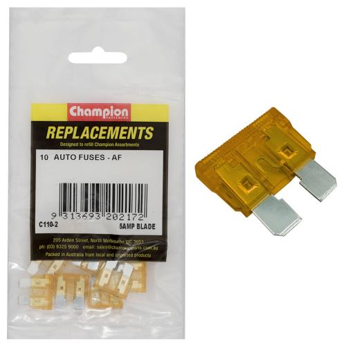 C110-2 | Champion AF 5Amp Standard Blade Fuse (Tan) -10pk Specifications • Pack Size: 10