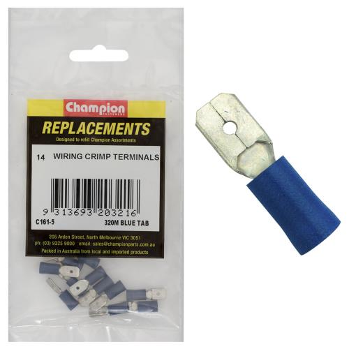 C161-5 | Champion Blue Male Push-On Spade Terminal -14pk Description • Pack Size: 14