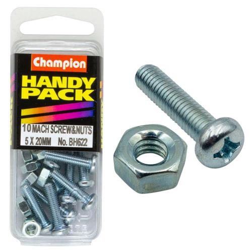 BH622|Champion M5 x 20mm Machine Set Screw Description • Pan Head • Phillips • 5mm x 20mm • Zinc Plated • Pack Size: 20