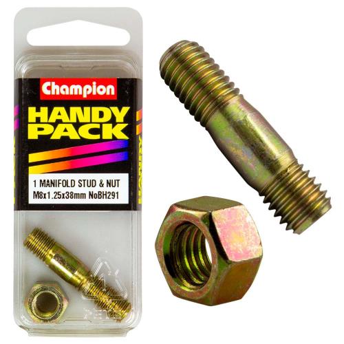 BH291|Champion M8 x 38 Manifold Stud & Nut Description • 8mm x 38mm x 1.25mm • Pack Size: 2