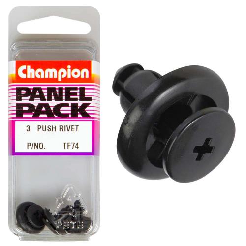 TF74 | Champion Push Rivet Description • Colour: Black • Length: 14mm • Hole: 5mm • Head: 15mm • Pack Size: 3