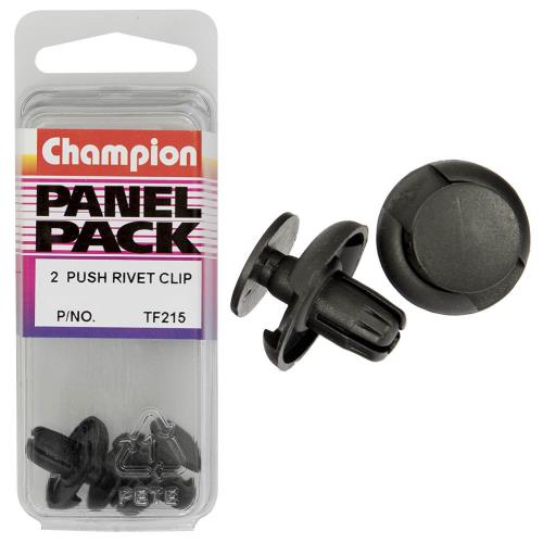 TF215 | Champion Push Rivet Black 10mm(L) 8mm(Hole) 20mm(HD) 2pk Specifications • Colour: Black • Length: 10mm • Hole: 8mm • Head: 20mm • Pack Size: 2