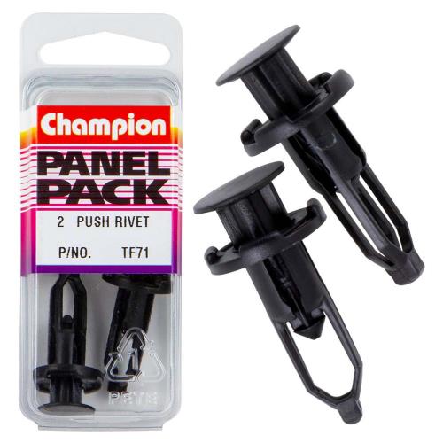 TF71 | Champion Push Rivet Black 18mm HD x 28mm -2pk Description • Colour: Black • Length: 28mm • Hole: 9mm • Head: 18mm • Pack Size: 2