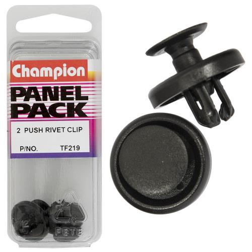 TF219 | Champion Push Rivet Black 7.5mm(L) 7mm(Hole) 18mm(HD) 2pk Specifications • Colour: Black • Length: 7.5mm • Hole: 7mm • Head: 18mm • Pack Size: 2