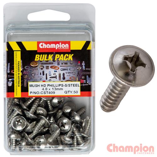 Champion S/Tapping Screws - Mushroom Head - 4.8 x 13mm