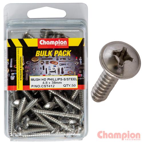 Champion S/Tapping Screws - Mushroom Head - 4.8 x 38mm