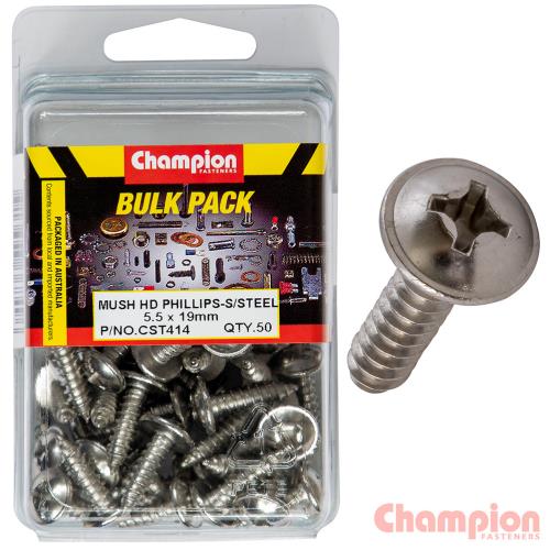 Champion S/Tapping Screws - Mushroom Head - 5.5 x 19mm