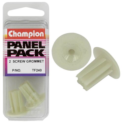 TF240 | Champion Screw Grommet Clear 22mm(W) 20mm(L) 12mm(Hole) 2pk Specifications • Colour: Clear • Length: 20mm • Width: 22mm • Hole: 12mm • Pack Size: 2