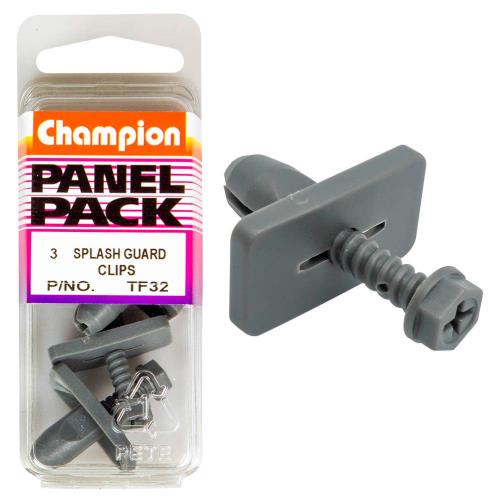 TF32 | Champion Splash Guard Clip 26mm x 14mm -3pk Description • Colour: Black • Length: 14mm • Hole: 9mm • Head: 26mm • Pack Size: 3