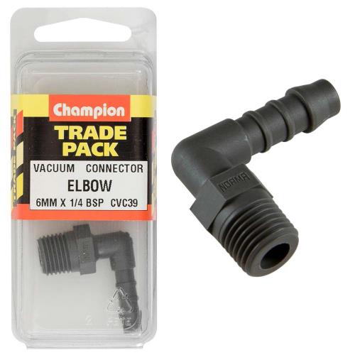CVC39|Champion Vacuum Hose - Elbow 6mm x 1/4in BSP Description • 6mm x 1/4" • BSP • Pack Size: 1