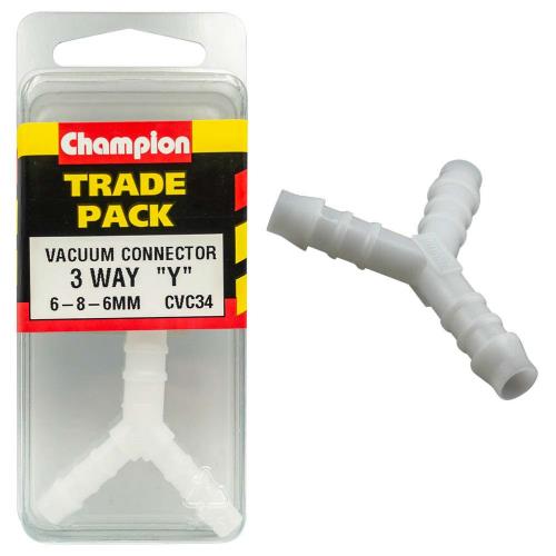 CVC34|Champion Vacuum Hose - Reduc. Y Piece 6mm x 8mm x 6mm Description • 6mm-8mm-6mm • Pack Size: 1