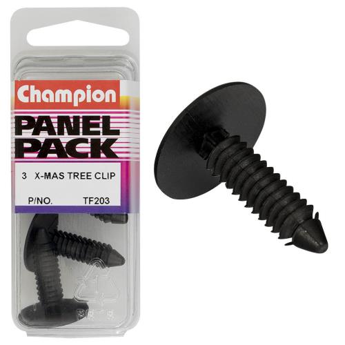 TF203 | Champion Xmas Tree Clip Black 29mm(L) 22mm(HD) 3pk Specifications • Colour: Black • Length: 29mm • Stem Dia: 8mm • Head: 22mm • Pack Size: 3