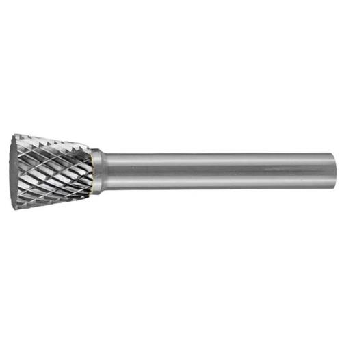 CB-SN1 | Holemaker Carbide Burr 1/4x1/4x1/4in Inverted Cone Shape DC Head Diameter: 1/4” Flute Length: 1/4” Overall Length: 2” Shank Diameter: 1/4” Angle: 10°