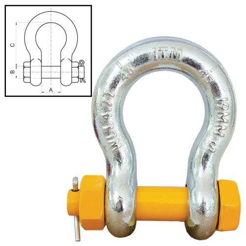 TM9222-12032| ITM Bow Shackle, Yellow Pin GS Safety Pin, 12 Ton, 32mm Body