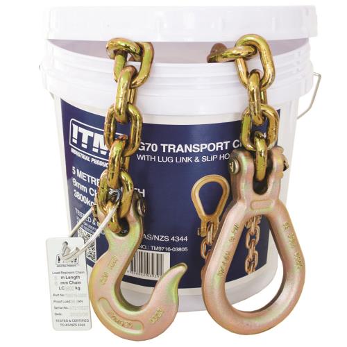 TM9716-03805| ITM G70 Transport Chain w/ Lug Link & Slip Hook, 3.8 Ton Lashing Capacity, 5M Length