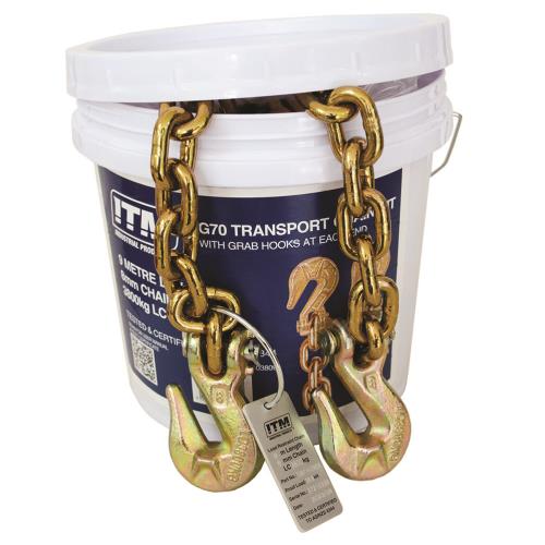 TM9714-03809| ITM G70 Transport Chain w/ Grab Hooks At Each End, 3.8 Ton Lashing Capacity, 9M Length