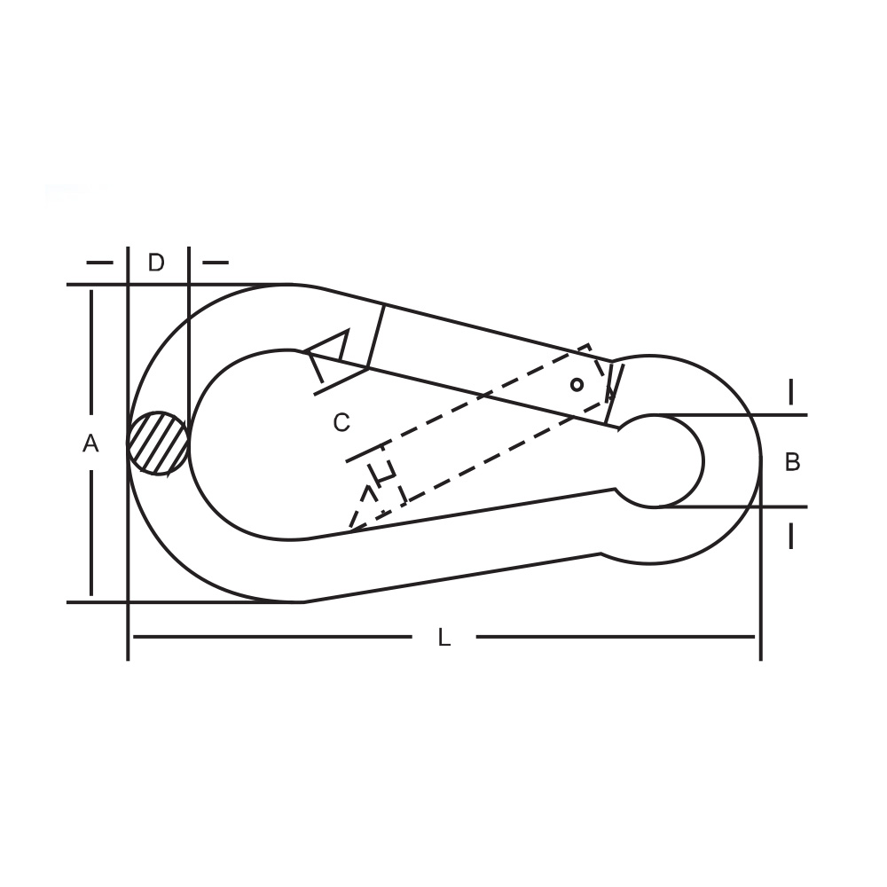 TM9254-01040| ITM Snap Hook, Electric Galvanised, 4mm • Electric galvanised zinc finish • Size: 4x40mm Body Dimensions (mm): A: 20 B: 7 C: 7 D: 4 L: 40 • Weight (kg): 0.006