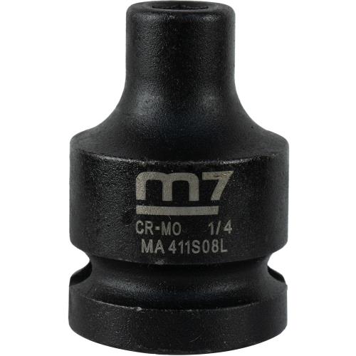 M7-MA411S08 | M7 Impact Socket 1/2in Dr. 1/4in Specifications • Drive: 1/2" • Diameter: 1/4" • Depth: 8.0mm • Overall Length: 38mm