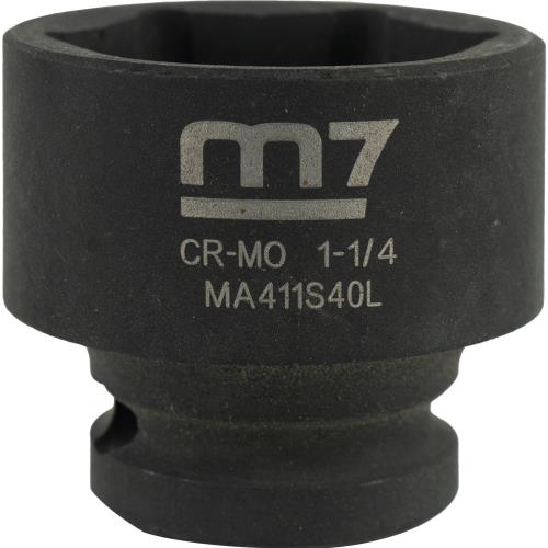 M7-MA411S40 | M7 Impact Socket 1/2in Dr. 1-1/4in Specifications • Drive: 1/2" • Diameter: 1-1/4" • Depth: 18.5mm • Overall Length: 40mm