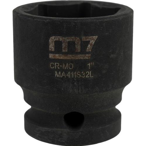 M7-MA411S32 | M7 Impact Socket 1/2in Dr. 1in Specifications • Drive: 1/2" • Diameter: 1" • Depth: 15.0mm • Overall Length: 38mm