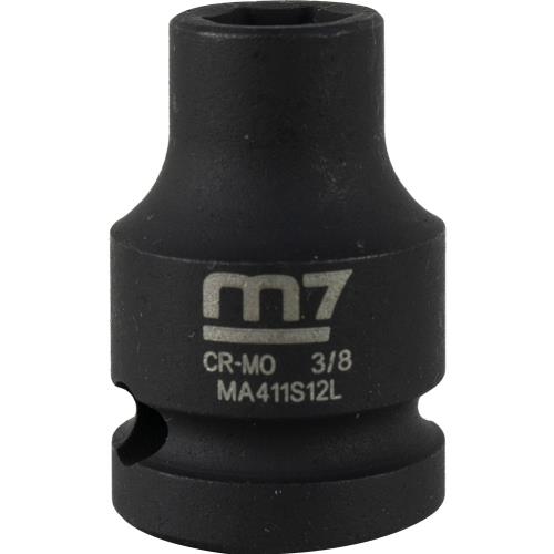 M7-MA411S12 | M7 Impact Socket 1/2in Dr. 3/8in Specifications • Drive: 1/2" • Diameter: 3/8" • Depth: 8.0mm • Overall Length: 38mm