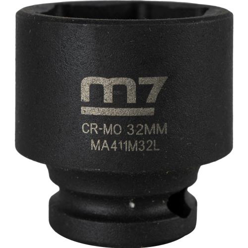 M7-MA411M32 | M7 Impact Socket 1/2in Dr. 32mm Specifications • Drive: 1/2" • Diameter: 32mm • Depth: 20.5mm • Overall Length: 46mm