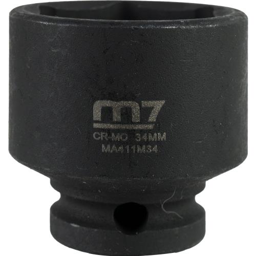 M7-MA411M34 | M7 Impact Socket 1/2in Dr. 34mm Specifications • Drive: 1/2" • Diameter: 34mm • Depth: 22mm • Overall Length: 46mm
