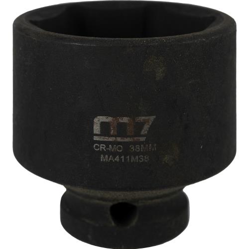 M7-MA411M38 | M7 Impact Socket 1/2in Dr. 38mm Specifications • Drive: 1/2" • Diameter: 38mm • Depth: 25mm • Overall Length: 50mm