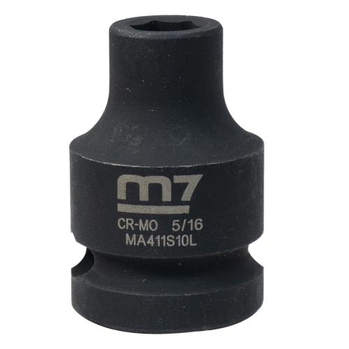 M7-MA411S10 | M7 Impact Socket 1/2in Dr. 5/16in Specifications • Drive: 1/2" • Diameter: 5/16" • Depth: 8.0mm • Overall Length: 38mm