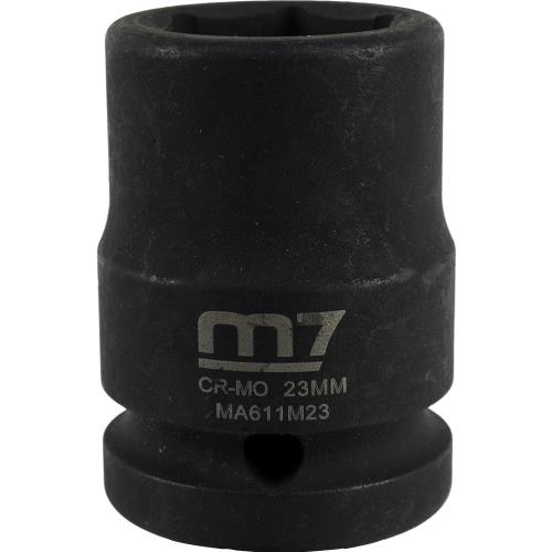 M7-MA611M23 | M7 Impact Socket 3/4in Dr. 23mm Specifications • Drive: 3/4" • Diameter: 23mm • Depth: 18mm • Overall Length: 52mm