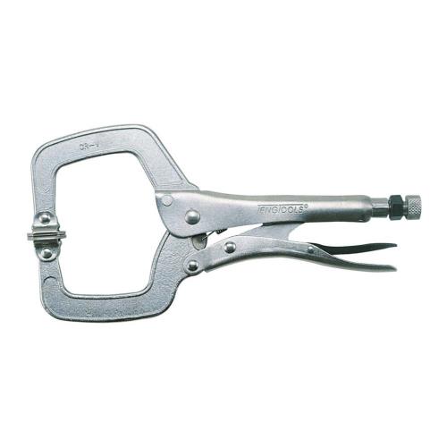 406P – 11” C-Clamp Power Grip Plier • Chrome Vanadium. • Self locking with release lever and locking nut for pre-setting. • With swivel-pads. • 275mm (11”) long, capacity 80mm.