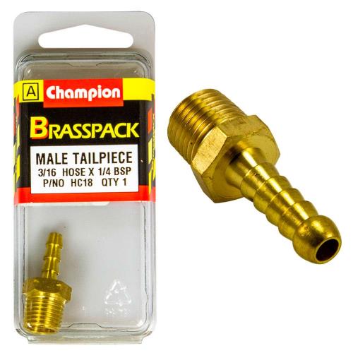HC18 | Champion Brass 3/16in Male Hose Barb x 1/4in BSP Description • Male • Tail Peice • 3/16 x 1/4" • Pack Size: 1