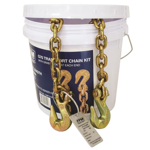 TM9714-02309| ITM G70 Transport Chain w/ Grab Hooks At Each End, 2.3 Ton Lashing Capacity, 9M Length